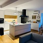 Top View Residence In Central Ljubljana ferielejlighed med et overfladeareal på 115 m^2 ligger i centrum af Ljubljana. Det består af 2 soveværelser, 2 badeværelser og et fuldt udstyret køkken.